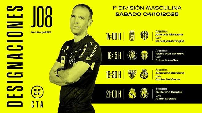 西班牙足協(xié)官方公布了周六西甲比賽裁判安排,夸德拉將執(zhí)法皇家馬德里vs比利亞雷亞爾。