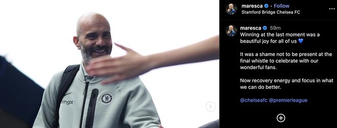 雷速體育10月6日宣 英超第7輪,切爾西在主場憑借埃斯特旺的絕殺以2-1的比分戰(zhàn)勝利物浦。賽后,本場比賽吃到一張紅牌的馬雷斯卡在社媒上發(fā)表了自己的感受。 “在最后時刻贏下比